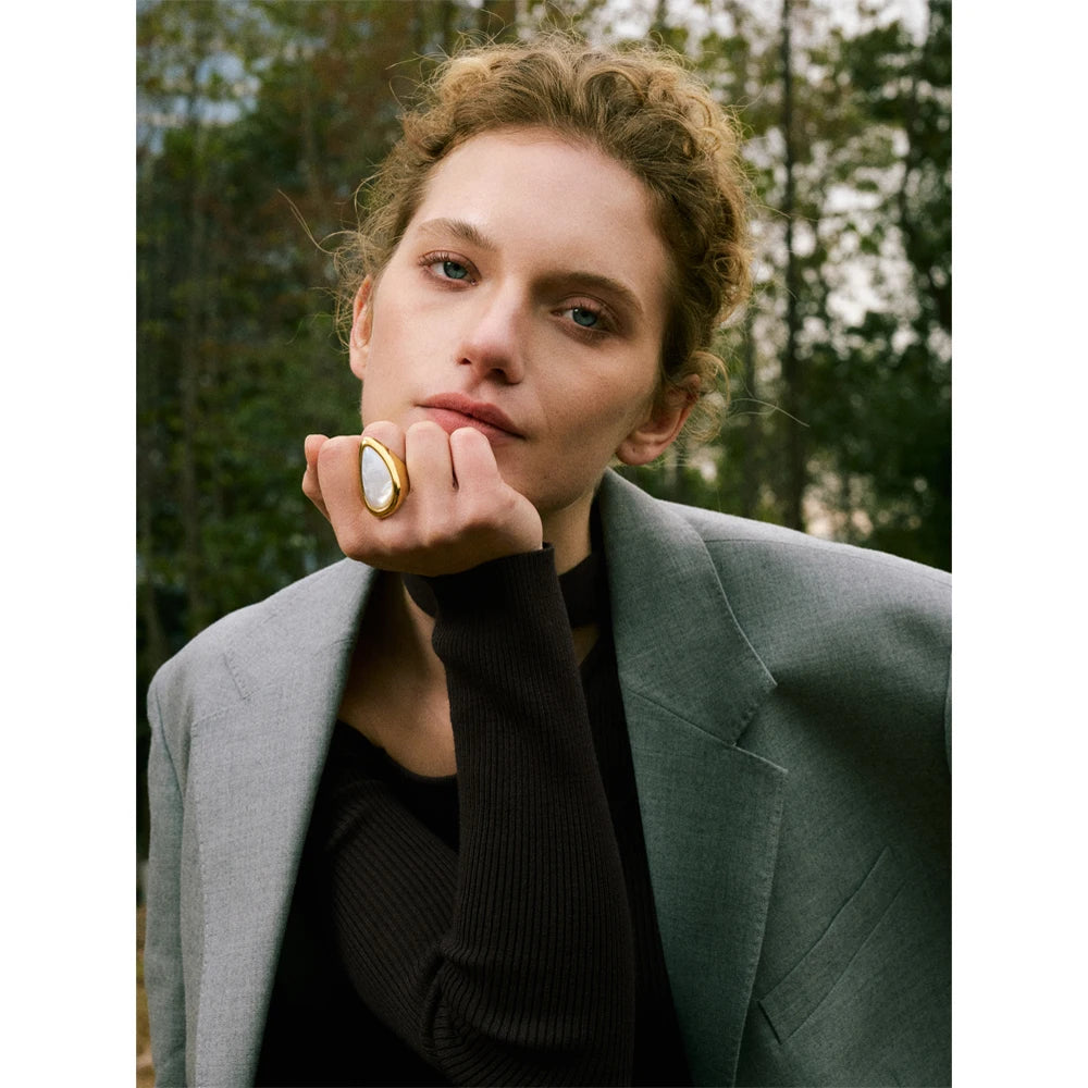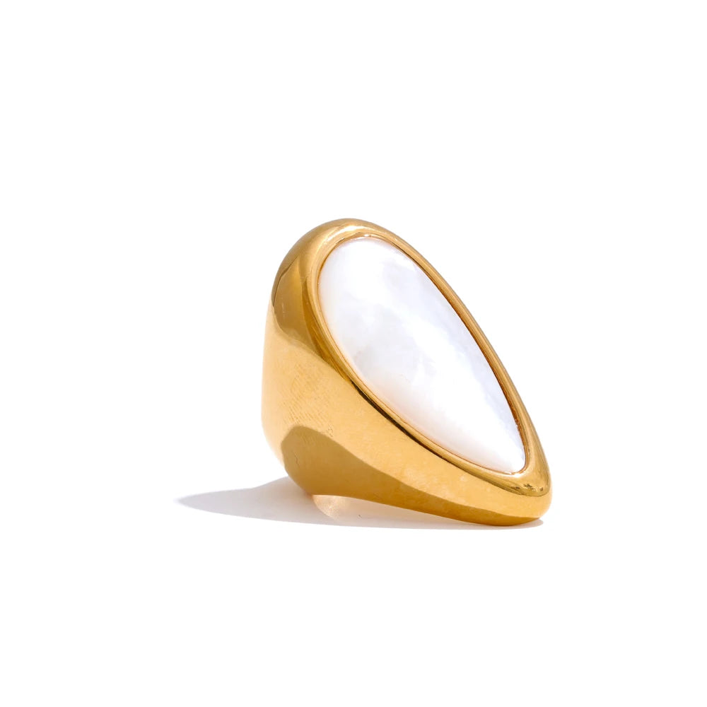 Dans un univers où l’élégance danse avec la lumière, la bague Atiny se dévoile, scintillant de notes dorées. Son design géométrique, fait de placage en or 18 carats et d'une délicate incrustation de coquillage, évoque la beauté des formes naturelles, offrant un éclat irrésistible à vos moments précieux. Une pièce qui raconte une histoire, celle d’une sophistication délicate.