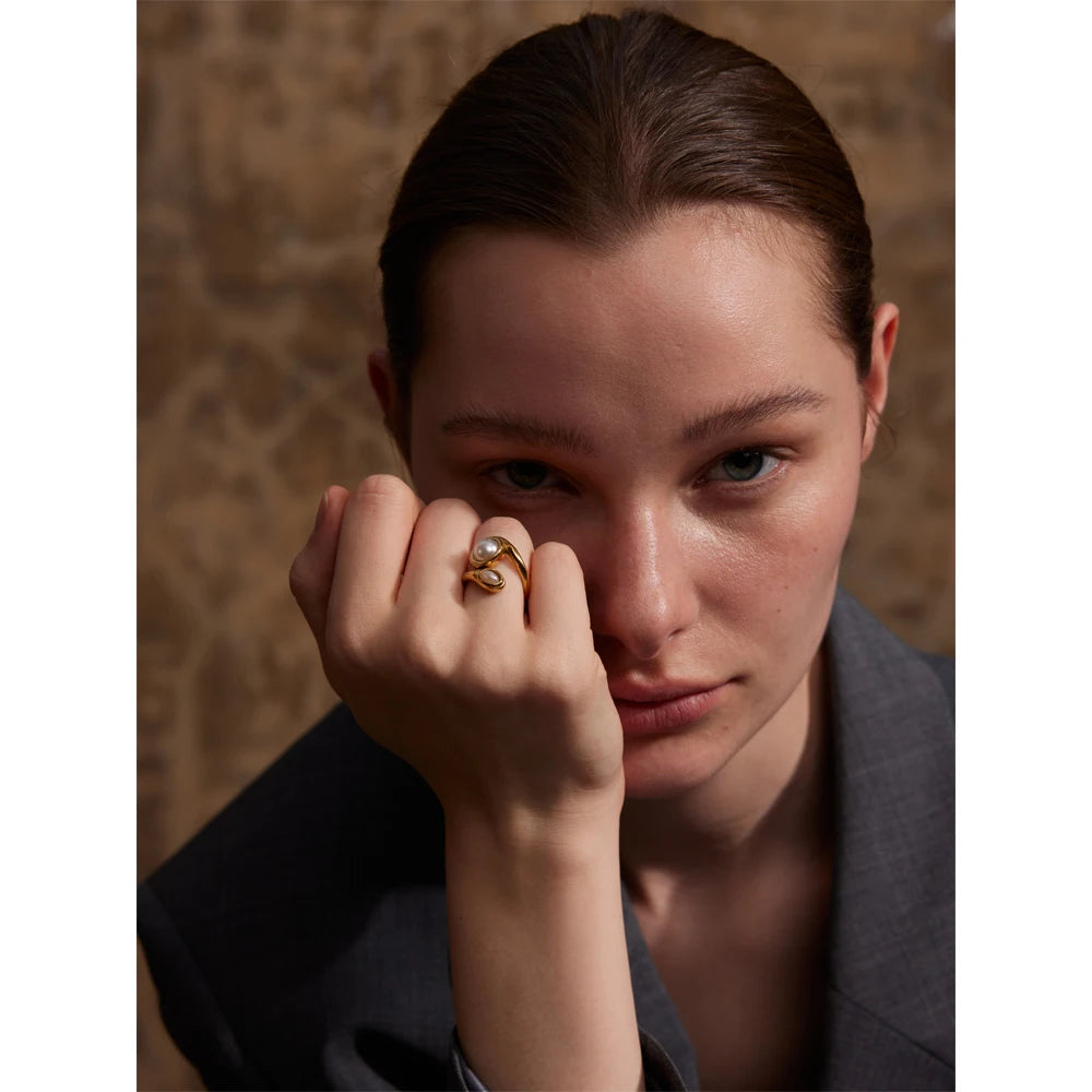 Évoquant la douceur d'une brise marine, la bague Karmen s'illumine de mille feux sous le doux éclat de la perle. Son délicat plaquage en or 18 carats sublime une structure en acier inoxydable, offrant à chaque mouvement une danse de lumière. Cette pièce raffinée incarne l'élégance intemporelle, unissant modernité et tradition dans une harmonie parfaite.
