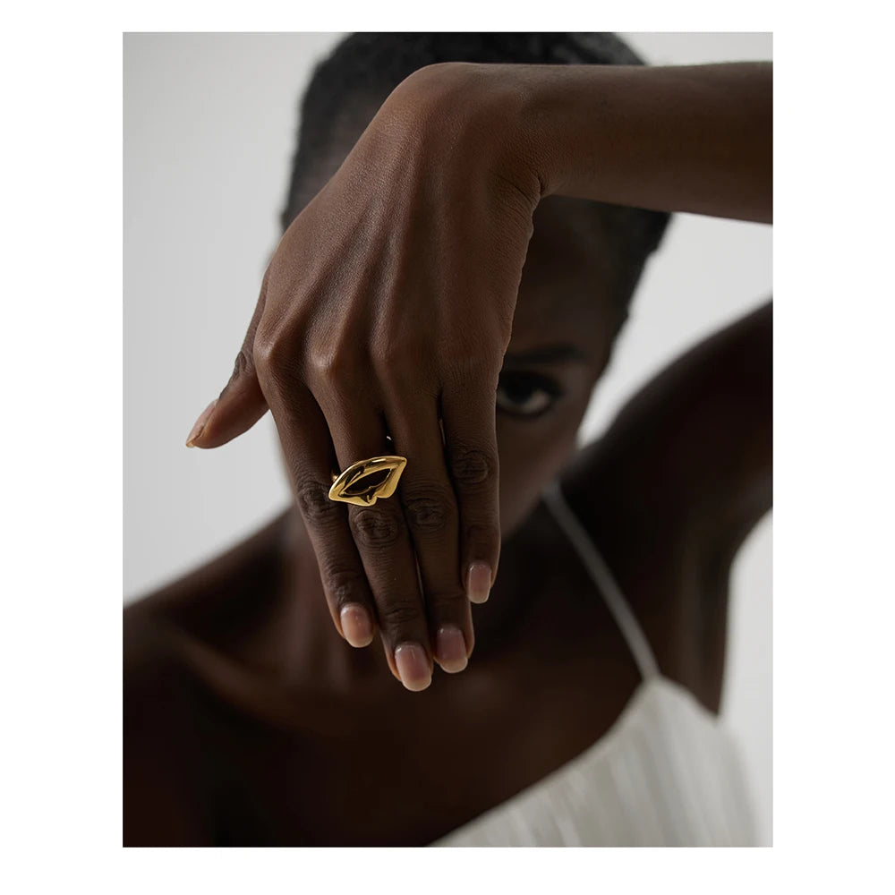 Dans un souffle de passion, la bague Kiss Kiss évoque la tendresse d’un baiser esquissé. Façonnée en acier inoxydable et recouverte d’un éclat d'or 18K, elle capture l’essence d’un amour intemporel. Sa délicate silhouette en forme de lèvres s’inscrit dans un univers où la sensualité et l'élégance se rencontrent, offrant à chaque instant un éclat inoubliable.